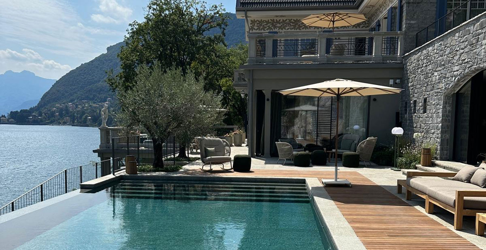 Our last project, Breakwater Bellagio, is a waterfront completely renovated luxury villa overlooking the Lecco branch, with 7 bright suites with lake view, infinity pool and relaxing areas.
